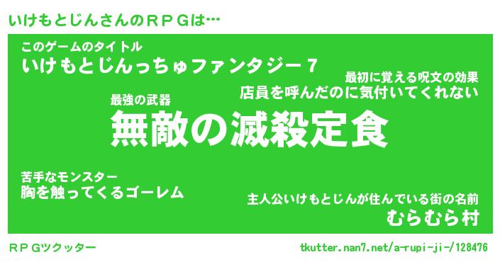 | 男性向けラノベタイトル風あだ名 | 『イケモトジンアートオンライン』 |