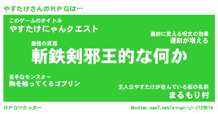 | 男性向けラノベタイトル風あだ名 | 『やすたけの憂鬱』 |