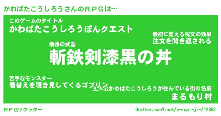 | ヒーロー風カッコイイあだ名 | 『スーパーカワバタコウシロウ』 |