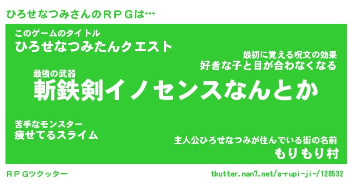 | 伝説のあだ名 | 『伝説のスナイパーひろせなつみ』 |