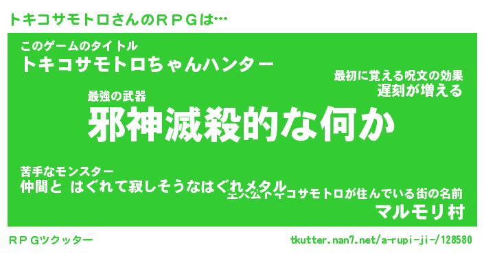 | ヒーロー風カッコイイあだ名 | 『スーパートキコサモトロ』 |
