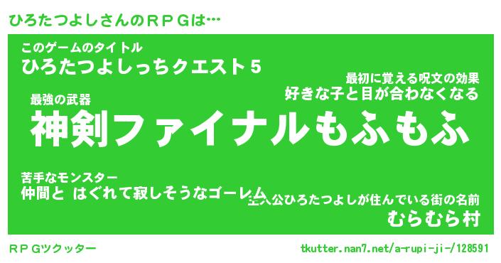 | 伝説のあだ名 | 『不死鳥の竜騎士ひろたつよし』 |