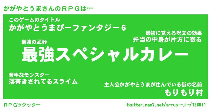 | 男性向けラノベタイトル風あだ名 | 『カガヤトウマアートオンライン』 |