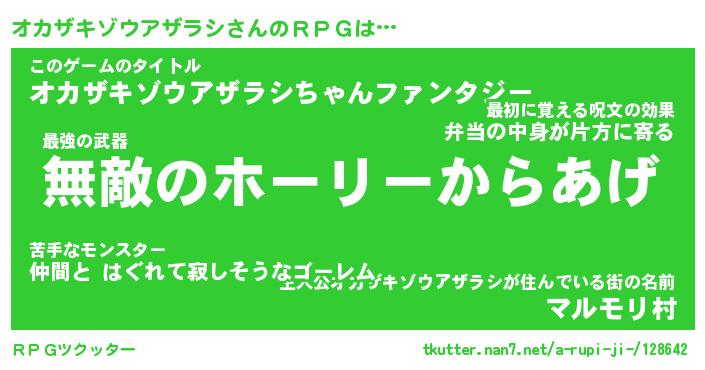 | 胡散臭い通販商品みたいなあだ名 | 『モテモテ間違いなし水晶球…その名も「オカザキゾウアザラシ」』 |