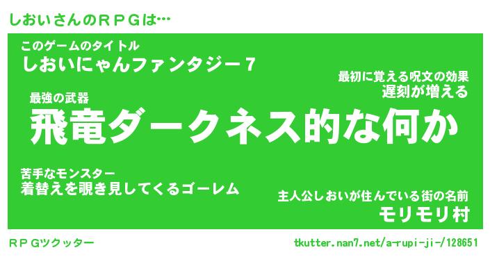 | ファンタジー風あだ名 | 『シオフェル』『エターナルシオイー』 |