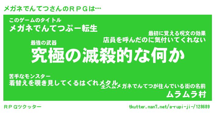 | 男性向けラノベタイトル風あだ名 | 『メガネデンテツアートオンライン』 |