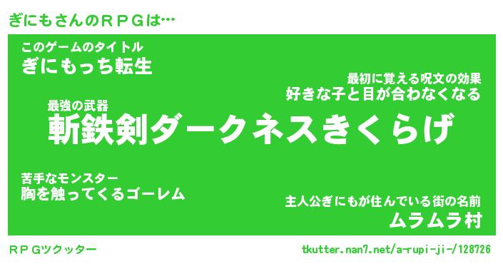 | 男性向けラノベタイトル風あだ名 | 『ぎにもの憂鬱』 |