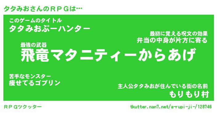 | ファンタジー風あだ名 | 『タタフェル』『エターナルタタミオー』 |