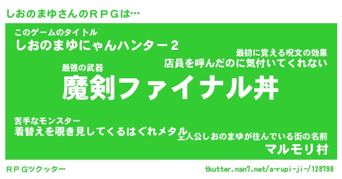 | ヒーロー風カッコイイあだ名 | 『スーパーシオノマユ』『魔戒騎士シオ』 |