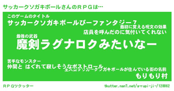 | 男性向けラノベタイトル風あだ名 | 『サッカークソガキボールの憂鬱』 |