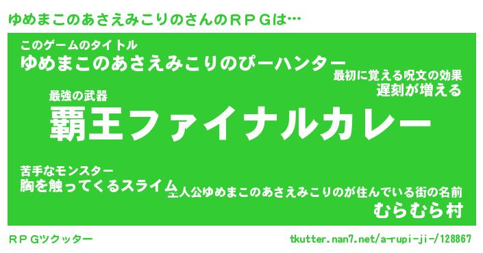 | 伝説のあだ名 | 『封印されし竜騎士ゆめまこのあさえみこりの』 |