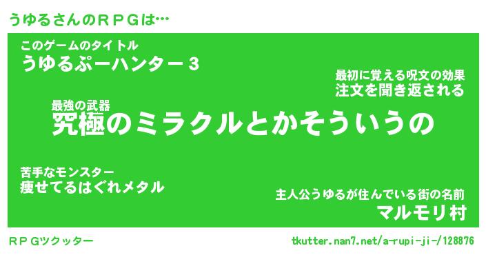| ヒーロー風カッコイイあだ名 | 『スーパーウユル』『ウルトラうゆるマン』 |