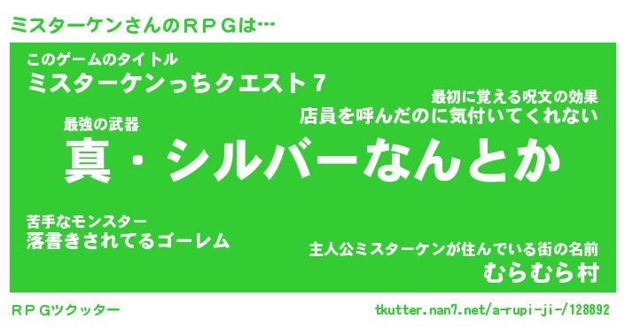 | ヒーロー風カッコイイあだ名 | 『スーパーミスターケン』『暗黒騎士ミス』 |