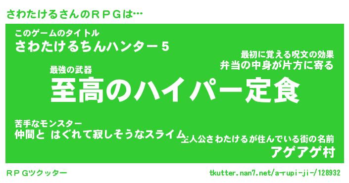 | ファンタジー風あだ名 | 『サワフェル』『エターナルサワタケルー』 |