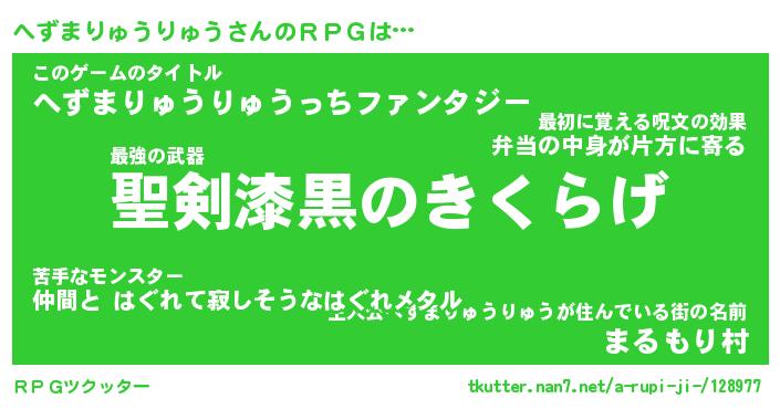 | ヒーロー風カッコイイあだ名 | 『スーパーヘズマリュウリュウ』 |