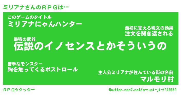| 料理風あだ名 | 『節約★ミリアナと油揚げの玉子丼』 |
