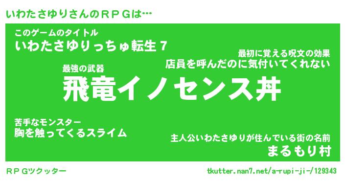 | 男性向けラノベタイトル風あだ名 | 『イワタサユリアートオンライン』 |