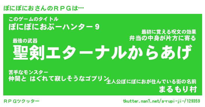 | 男性向けラノベタイトル風あだ名 | 『ぽにぽにおの憂鬱』 |