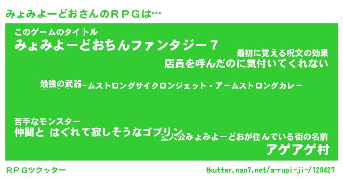 | 男性向けラノベタイトル風あだ名 | 『ミョミヨードオアートオンライン』 |