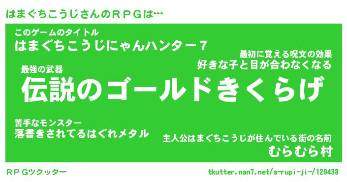 | 男性向けラノベタイトル風あだ名 | 『はまぐちこうじの憂鬱』 |