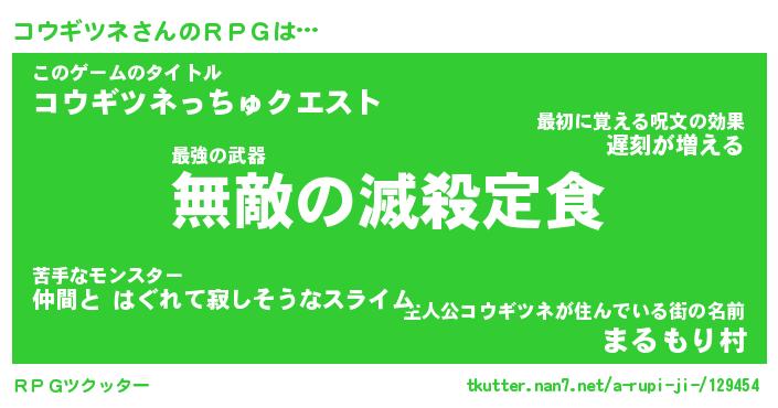| 男性向けラノベタイトル風あだ名 | 『コウギツネアートオンライン』 |