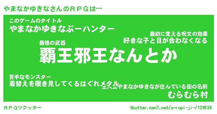 | 伝説のあだ名 | 『封印されし傭兵やまなかゆきな』 |