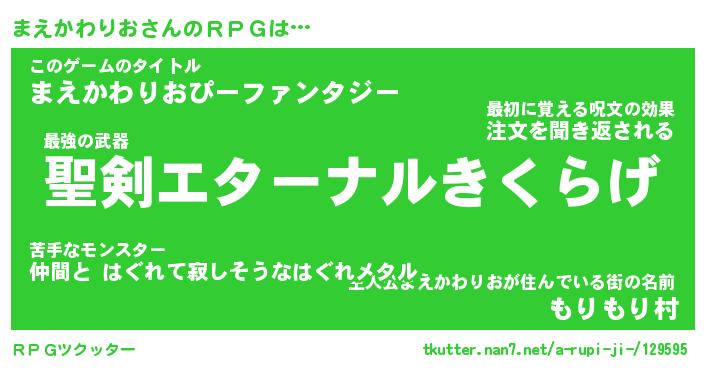 | 肩書あだ名 | 『まえかわりお店長』『まえかわりお団長』 |