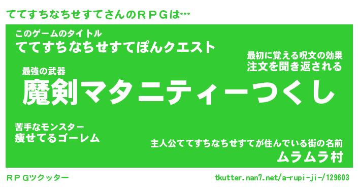 | 胡散臭い通販商品みたいなあだ名 | 『必ず成功する霊験あらたかなお札…その名も「ててすちなちせすて」』 |