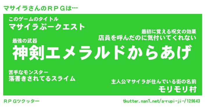 | 意味不明あだ名 | 『ペロリンマサイラ』『永久保存マサイラ』 |