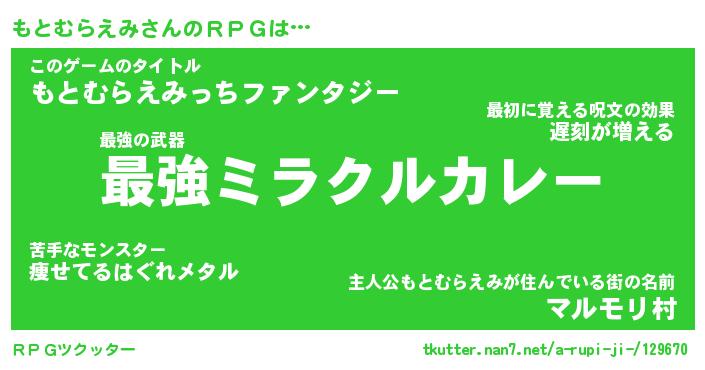 | ヒーロー風カッコイイあだ名 | 『スーパーモトムラエミ』『幻影騎士モト』 |