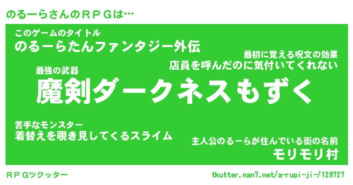 | 男性向けラノベタイトル風あだ名 | 『のるーらの憂鬱』 |