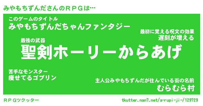 | 伝説のあだ名 | 『伝説の傭兵みやもちずんだ』 |
