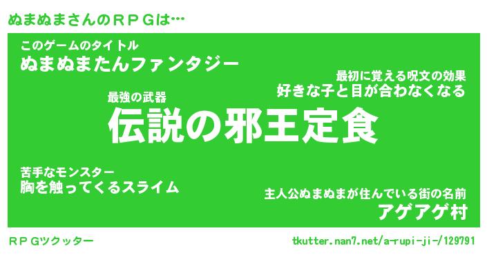 | ファンタジー風あだ名 | 『ヌマフェル』『エターナルヌマヌマー』 |