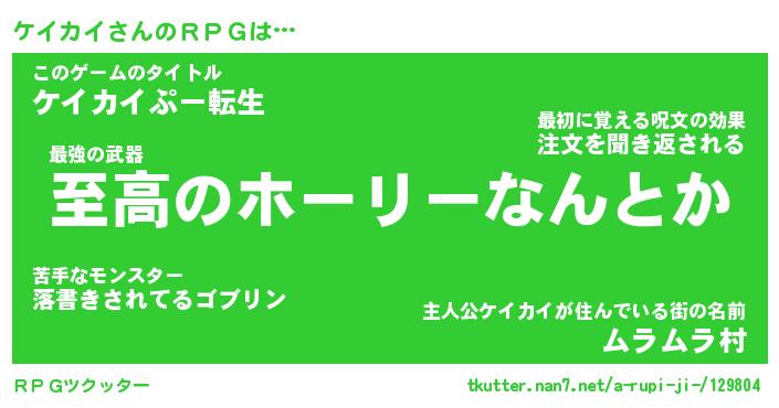 | ファンタジー風あだ名 | 『ケイフェル』『エターナルケイカイー』 |