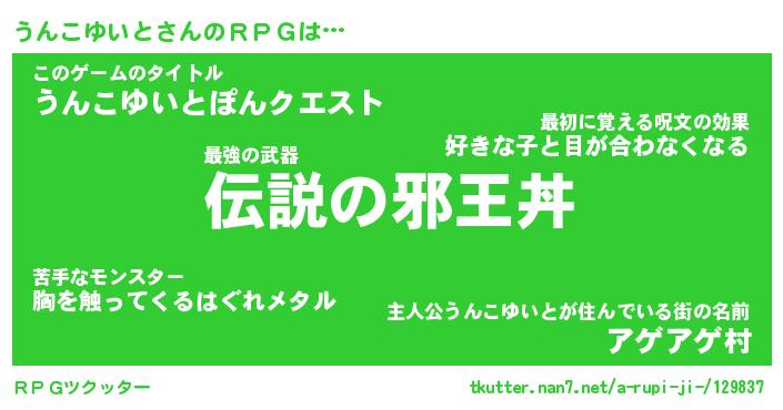 | ヒーロー風カッコイイあだ名 | 『スーパーウンコユイト』『幻影騎士ウン』 |