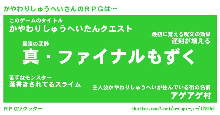 | 胡散臭い通販商品みたいなあだ名 | 『億万長者になれる水晶球…その名も「かやわりしゅうへい」』 |
