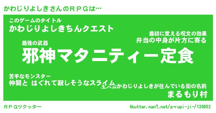| 胡散臭い通販商品みたいなあだ名 | 『億万長者になれる霊験あらたかなお札…その名も「かわじりよしき」』 |