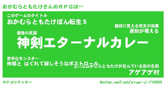 | 男性向けラノベタイトル風あだ名 | 『おかむらともたけの憂鬱』 |
