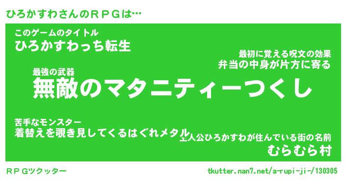 | ヒーロー風カッコイイあだ名 | 『スーパーヒロカスワ』『幻影騎士ヒロ』 |