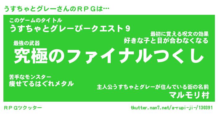 | 男性向けラノベタイトル風あだ名 | 『うすちゃとグレーの憂鬱』 |