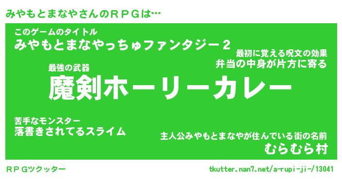 | ファンタジー風あだ名 | 『ミヤフェル』『ファントムミヤス』 |