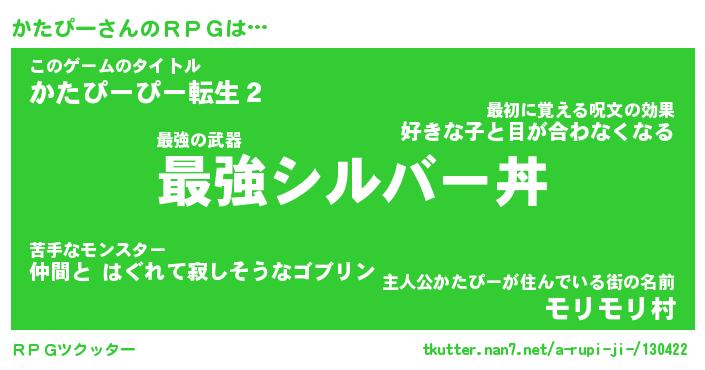 | ヒーロー風カッコイイあだ名 | 『スーパーカタピー』『幻影騎士カタ』 |