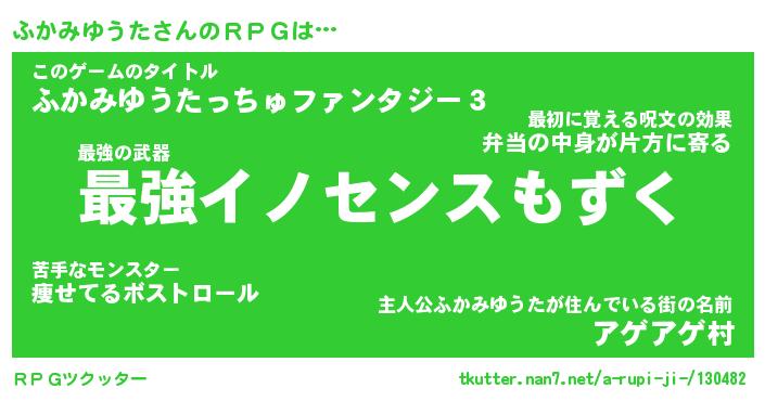 | 胡散臭い通販商品みたいなあだ名 | 『モテモテ間違いなし霊験あらたかなお札…その名も「ふかみゆうた」』 |