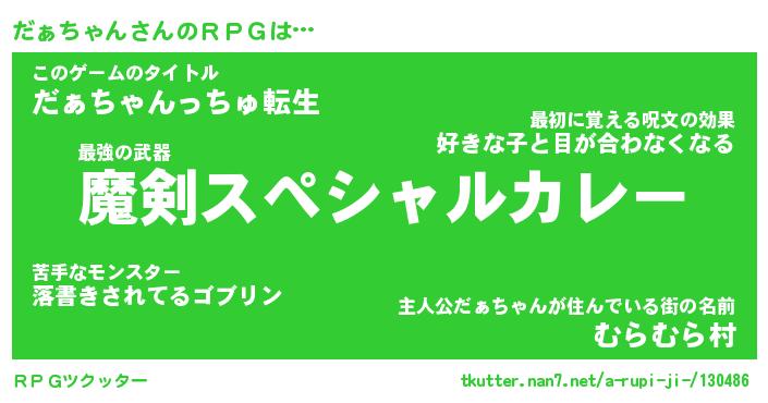 | ファンタジー風あだ名 | 『ダァフェル』『エターナルダァチャンー』 |