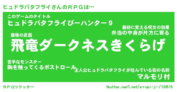 | 男性向けラノベタイトル風あだ名 | 『ヒュドラバタフライアートオンライン』 |