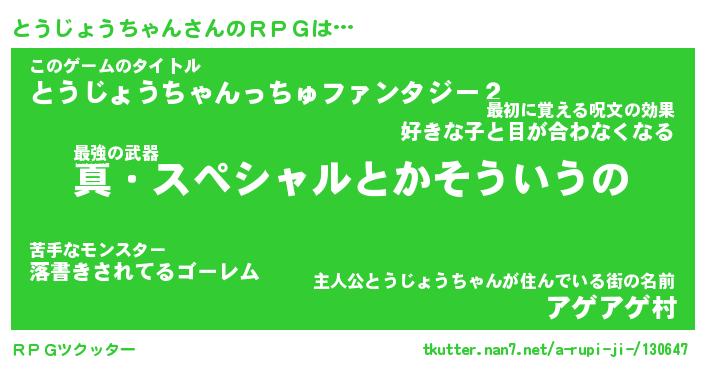 | 胡散臭い通販商品みたいなあだ名 | 『億万長者になれるブレスレット…その名も「とうじょうちゃん」』 |