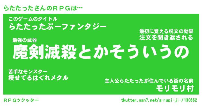 | ヒーロー風カッコイイあだ名 | 『スーパーラタタッタ』『魔戒騎士ラタ』 |