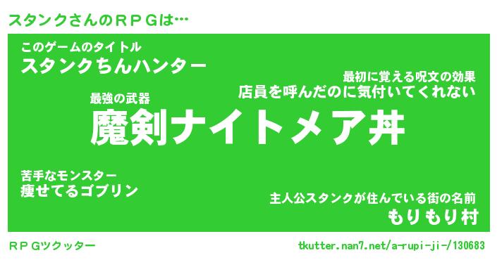 | 男性向けラノベタイトル風あだ名 | 『スタンクの憂鬱』 |