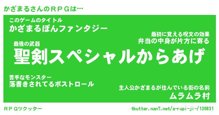 | ファンタジー風あだ名 | 『カザフェル』『エターナルカザマルー』 |