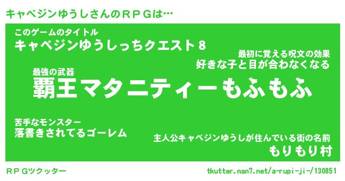 | 男性向けラノベタイトル風あだ名 | 『キャベジンユウシアートオンライン』 |